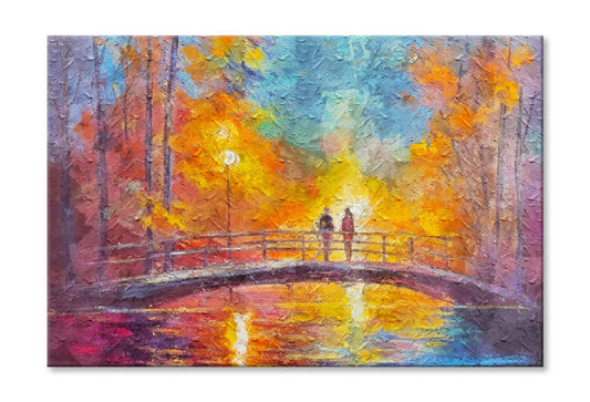 Lovers On Bridge In Forest At Night In Beautiful Romantic Rays Wall Art Limited Edition High Quality Print