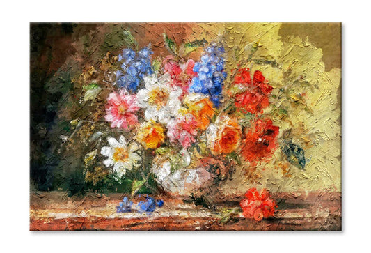Life, Bouquet Of Flowers In A Vase On Wooden Background Wall Art Limited Edition High Quality Print
