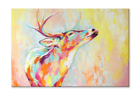 Abstract Multicolored Closeup Deer Oil Painting Wall Art Limited Edition High Quality Print