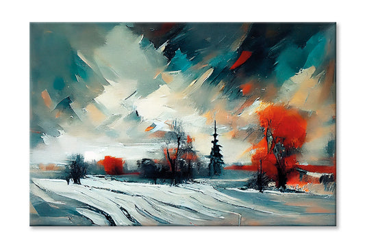 Abstract Forest, Snowy Trees & Field Oil Painting Wall Art Limited Edition High Quality Print