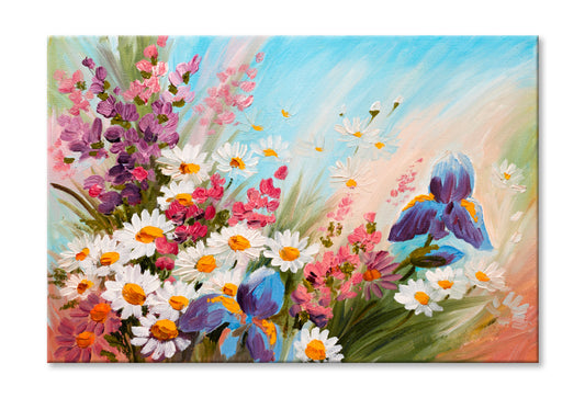 Abstract Illustration of Flowers, Daisies Oil Painting Wall Art Limited Edition High Quality Print