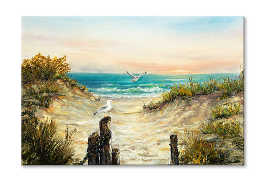 Ocean Beach Dunes With Seagulls Oil Painting Wall Art Limited Edition High Quality Print