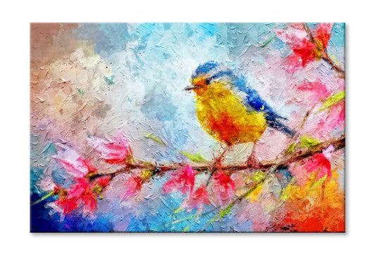 Painting Of Bird and Spring Flower Wall Art Limited Edition High Quality Print