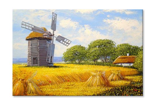 Old Village, Field, Windmill Oil Painting Wall Art Limited Edition High Quality Print
