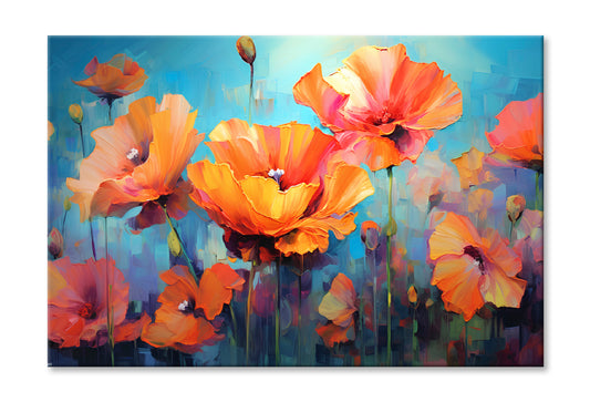 Orange Red Poppy Flowers Oil Painting Wall Art Limited Edition High Quality Print