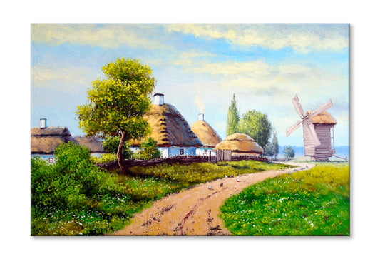 Old Village, Hut, Road, Windmill Oil Painting Wall Art Limited Edition High Quality Print