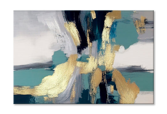 Paint Strokes, Golden Elements Oil Painting Wall Art Limited Edition High Quality Print