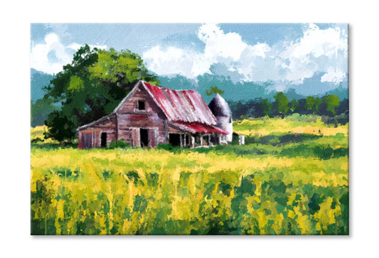 Painting Of Old Farm and Fields in Countryside Wall Art Limited Edition High Quality Print