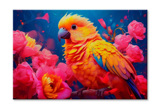 Parrot Bird & Rose Flower Oil Painting Wall Art Limited Edition High Quality Print