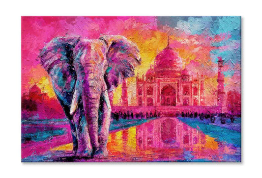 Painting Of Elephant with Taj Mahal Sunset Wall Art Limited Edition High Quality Print