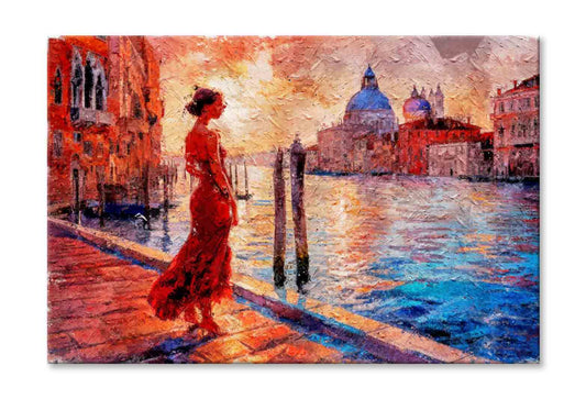 Painting Of Standing Girl in Venice Grand Canal Italy Wall Art Limited Edition High Quality Print