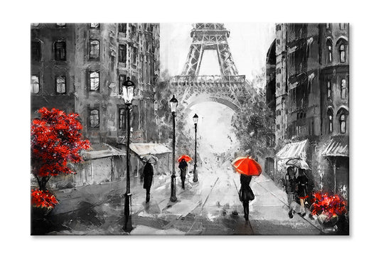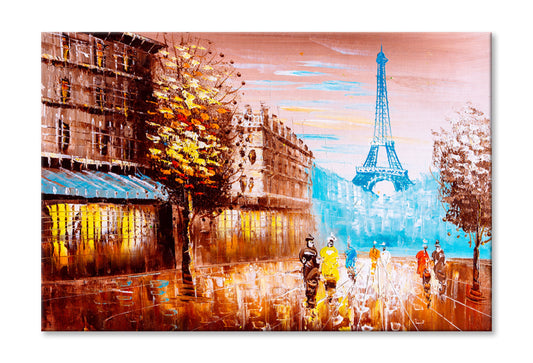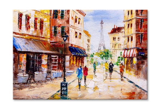 People Walking in Street & Eiffel Tower Oil Painting Wall Art Limited Edition High Quality Print