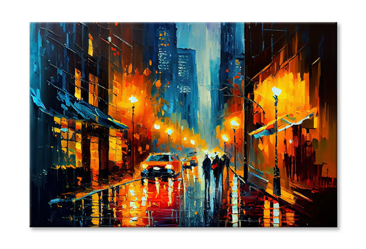 People Walking in City Street Night Oil Painting Wall Art Limited Edition High Quality Print