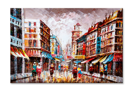 People Walking in Street of Hong Kong Oil Painting Wall Art Limited Edition High Quality Print