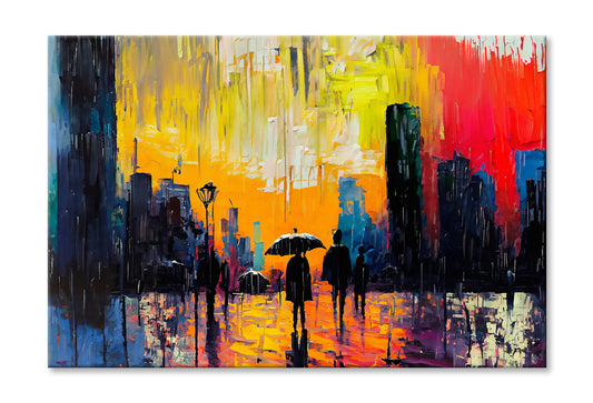 People Walking in the Road City Abstract Oil Painting Wall Art Limited Edition High Quality Print