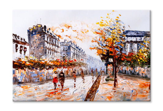 People Walking in Street of Paris & Trees Oil Painting Wall Art Limited Edition High Quality Print
