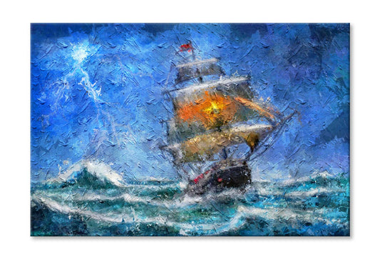 Pirate Ship Navigating During a Storm. Thunder, Rain Big Waves on the Ocean Wall Art Limited Edition High Quality Print