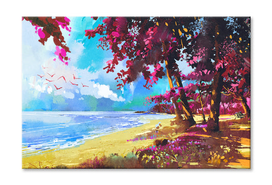 Pink Trees On The Beach Summer Landscape Oil Painting Limited Edition High Quality Print