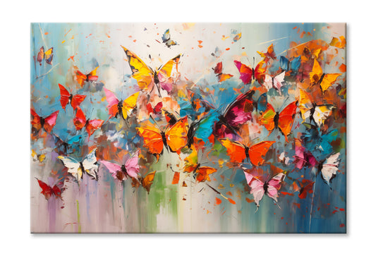 Pink Red Yellow Butterflies Abstract Oil Painting Wall Art Limited Edition High Quality Print