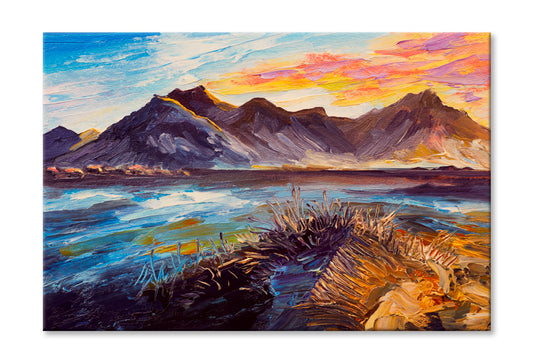 Pink Sunset, Sea, Mountains Oil Painting Limited Edition High Quality Print