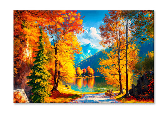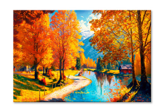 Reflection Of Autumn Trees In Water, Autumn Lake Oil Painting Limited Edition High Quality Print