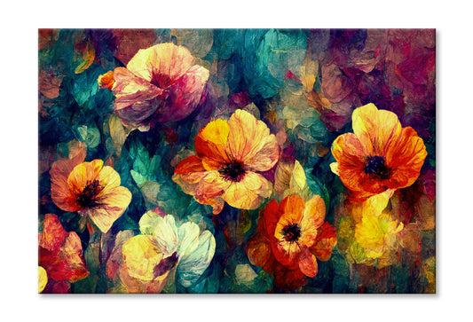Red Orange Blue Abstract Flowers Oil Painting Wall Art Limited Edition High Quality Print