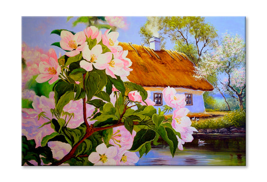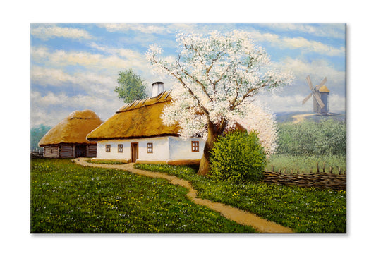 Spring Tree near Old Village Houses Oil Painting Wall Art Limited Edition High Quality Print
