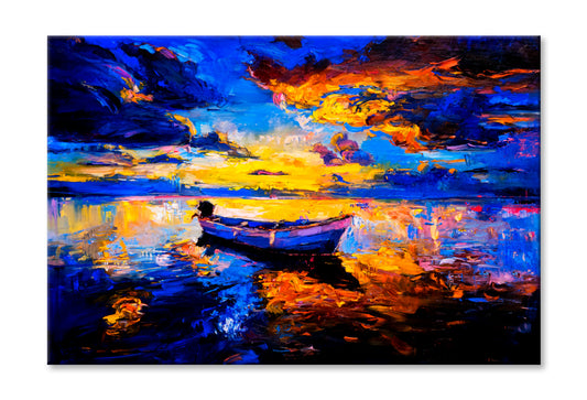 Sky Sunset & Boat On The Water Oil Painting Wall Art Limited Edition High Quality Print