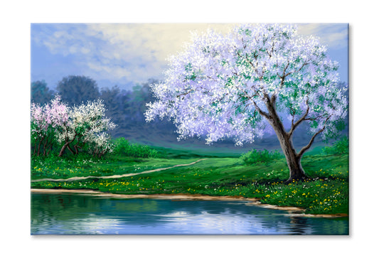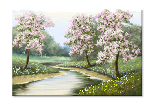 Spring Flower Trees near River Oil Painting Wall Art Limited Edition High Quality Print