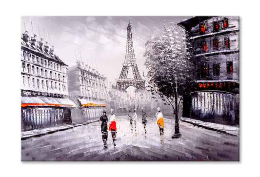 Street View Of Paris With Eiffel Tower Oil Painting Wall Art Limited Edition High Quality Print