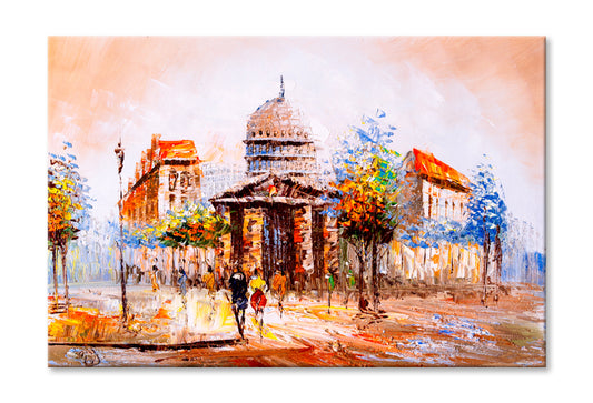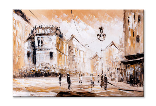 Street View Of Cityscape With Couple Oil Painting Wall Art Limited Edition High Quality Print