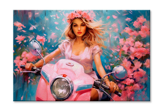Stylish Girl Scooter Abstract Painting Wall Art Limited Edition High Quality Print