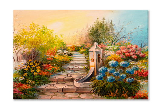 Stone Embankment, Filled With Flowers Oil Painting Wall Art Limited Edition High Quality Print