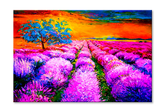 Sunset Over Lavender Field Oil Painting Wall Art Limited Edition High Quality Print