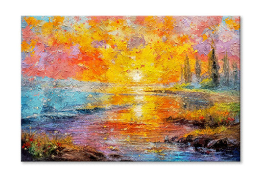 Sunset On The Lake, Abstract Art Oil Painting Limited Edition High Quality Print