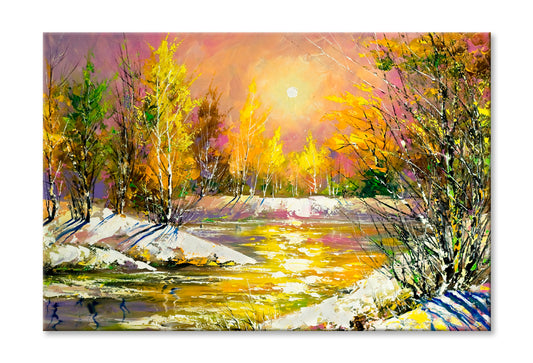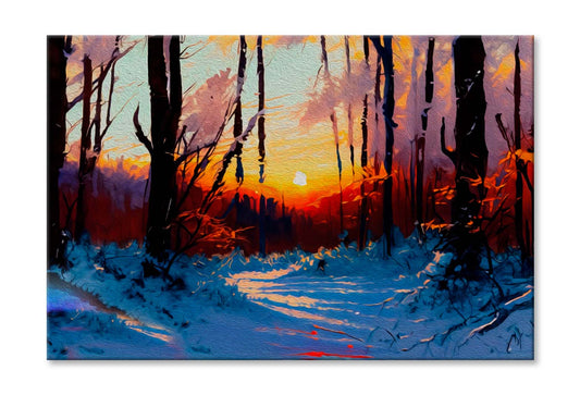 Sunset & Forest Oil Painting Wall Art Limited Edition High Quality Print