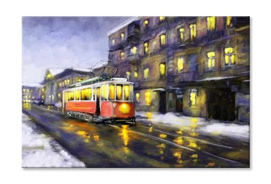 Tram in Old City Night Oil Painting Wall Art Limited Edition High Quality Print