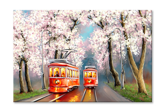 Tram Spring Oil Painting Wall Art Limited Edition High Quality Print