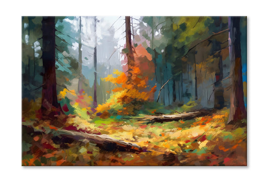 Tree Trunk & Autumn Forest Oil Painting Wall Art Limited Edition High Quality Print