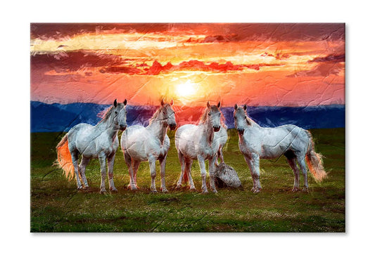 The Four Horses Sunrise Watercolor Painting Wall Art Limited Edition High Quality Print