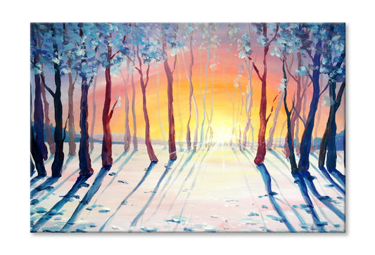 Trees on Snow Field Sunset Sky Oil Painting Wall Art Limited Edition High Quality Print