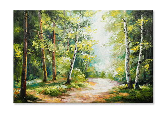 Trees On Summer Forest & Forest Road Oil Painting Wall Art Limited Edition High Quality Print