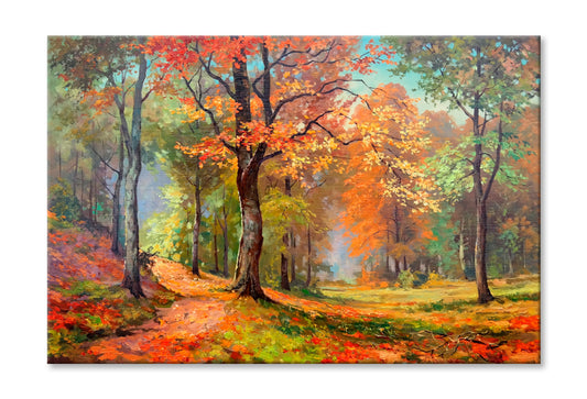 Trees With Colorful Foliage In Sun Oil Painting Wall Art Limited Edition High Quality Print