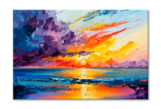 The Sea, Multicolored Sunset Oil Painting Wall Art Limited Edition High Quality Print