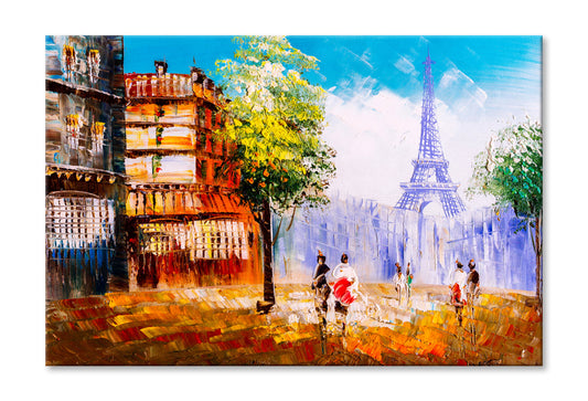 Trees in Street of Paris with People Oil Painting Wall Art Limited Edition High Quality Print
