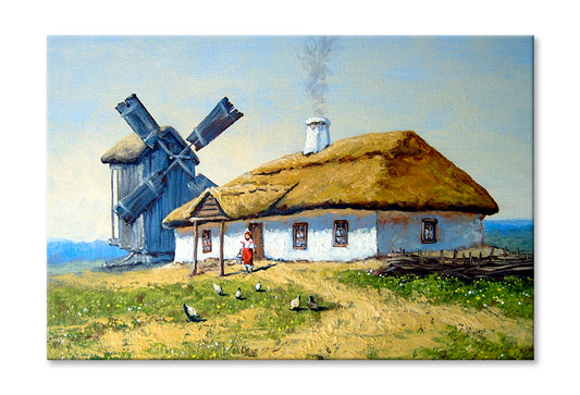 Ukrainian House, Windmill Oil Painting Wall Art Limited Edition High Quality Print