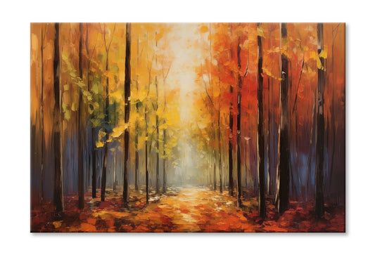 Vibrant Autumn Forest Path Oil Painting Wall Art Limited Edition High Quality Print