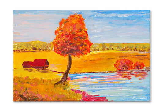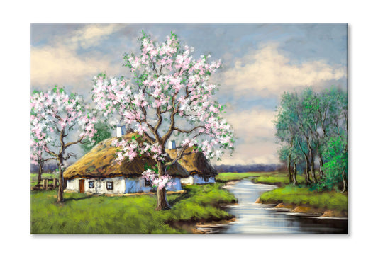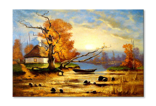 Village House & Dead Tree near River Oil Painting Wall Art Limited Edition High Quality Print