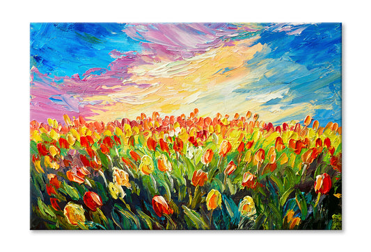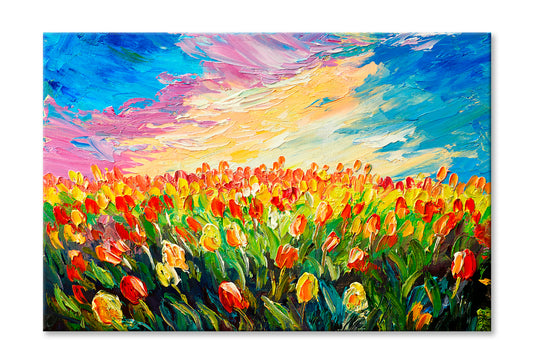 Tulips Flower Field under Sunrise Sky Oil Painting Wall Art Limited Edition High Quality Print