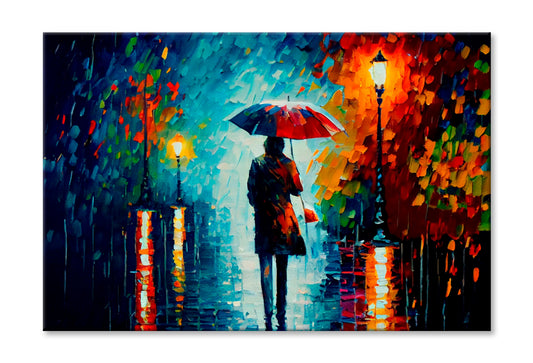 Walking In The Rain With Umbrella Oil Painting Wall Art Limited Edition High Quality Print